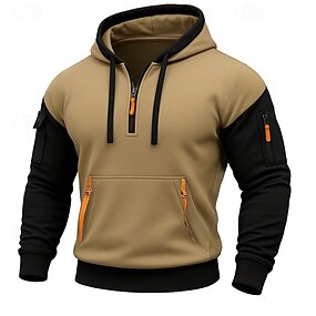 Voor heren Trui met capuchon Hoodie met kwartrits Fleece hoodie Tactische capuchon Zwart Khaki Donkergrijs Capuchon Effen Lapwerk Vetoketju Kleurenblok Sport & Outdoor Casual Dagelijks Streetwear