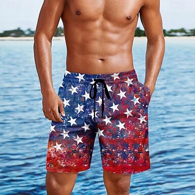Voor heren Vlag 4 juli, 250e verjaardag van de VS Adelaar Lange zwembroeken Zwemshorts Boardshorts Medium Taille Modieus Ontwerper Strand Surfen Feestdagen Trekkoord Zak Elastische taille Ontwerper