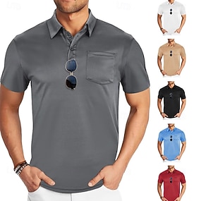 Voor heren Polo Poloshirts Casual Vakantie Revers Korte mouw Modieus Modern Effen Zak Knop Zomer Lente Normale pasvorm Zwart Wit Wijn Marineblauw Khaki Grijs Polo