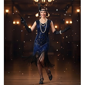 Roaring jaren '20 Jaren 1920 Tot de knie Jurken Flapper jurk Mouwloos The Great Gatsby Kwastje Lovertje Kwastje V-hals Kostuum Dames Club speakeasy Avondje uit & Speciale gelegenheid Volwassenen