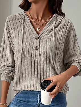 dames pullover comfortabel effen thuiswerk casual hoodie knopen lange mouw roze grijs herfst& winter