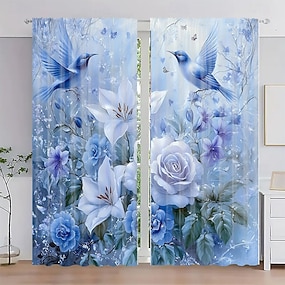 2 stuks gordijnen met planten- en bloemenmotief, polyester raamgordijnen met tunnelzoom, groene botanische print voor woonkamer, slaapkamer, keuken, studentenkamer, enz.