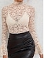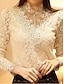 Dames Kanten overhemd Blouse Effen Kleur Stijlvol Casual Lange mouw Hoge nek Normale tops Dagelijks Kant Lapwerk Zwart Wit Blozend Roze blauw Abrikoos Lente Herfst Winter