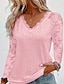 Vrouwen Witte Elegante Kant Tops Eyelet Blouse Casual Effen Kleur Reguliere Tops Lange Mouw V-Hals Kant Patchwork Reguliere Pasvorm Dagelijkse Zwart Wit Roze Romantische Petite Tops Zomer