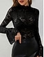 Dames Kant splitsende top Sexy Lange mouw Strakke ronde hals Normale tops Kant Zwart Wit Zomer Lente