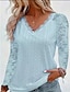 Dames Kanten overhemd Effen Kleur Elegant Stijlvol Casual Lange mouw V-hals Normale tops Dagelijks Kant Lapwerk Zwart Wit Geel Wijn Groen Lente Herfst Winter