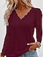 Dames Overhemd Blouse Effen Kleur Basic Casual Lange mouw V-hals Normale tops Dagelijks Kant Lapwerk Zwart Herfst Winter