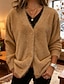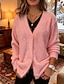 Dames Cardigan Trui Geweven Ribbels Knop Voor Rond Hals Lange Mouw Lichtgewicht vrouwelijke Dagelijks Grafisch Crew Hals Print Reguliere Tops Brei Weekend Roze Khaki Herfst Winter