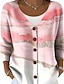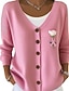 Dames Cardigan Trui Geweven Ribbels Knop Voor Rond Hals Lange Mouw Lichtgewicht vrouwelijke Mode Dagelijks Casual Bloem Grafisch Knoppen Print Brei Buitenshuis Dagelijks Datum Roze Oranje Herfst