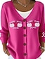 Kerstmis Dames Sweater Cardigan Casual Zacht Claus Ribbel V-Hals Gebreid Lange Mouw Reguliere Tops Gebreid Buiten Dagelijks Roze Blauw Herfst Winter