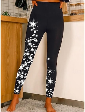 Kerstmis Vrouwen Sneeuwvlok Leggings Vakantie Vintage Mode Volledige Lengte Hoge TaillePantsUgly Grafische Print Thermisch Warm Zacht Ademend Hoge Elasticiteit Formeel Buitenshuis Vakantie Zwart