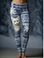Kerstmis Vrouwen Leggings Vakantie Vintage Etnische Stijl Volledige Lengte Hoge Taille Broeken Lelijke Grafische Claus 3D Print Sneldrogend Ademend Zacht Rekbaar Buiten Thuis Casual Wit