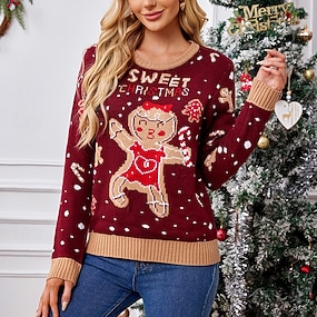 Peperkoek man Lelijke kersttrui Pullover Trui Dames Kerstmis Noviteit Grappig Gebreid Verlicht Patroon Volwassenen Kerstmis Nieuwjaar kerstavond Kerstmis Feest Top