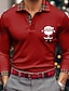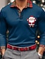 Kerstmis Voor heren Kerstman Polo Lange mouw Poloshirt Revers Casual Buiten Alledaagse kleding Festivaloutfit 3D-afdrukken Knop Lente Herfst Winter blauw Zwart Rood