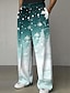 Kerstmis Voor heren Sneeuwvlok Overgangskleur Broek Pakken Kostuumbroek Medium Taille Mode-casual Buiten Feestdagen Relaxed Fit Flat Front Dress-broek met zijzakken Herfst Winter 3D-afdrukken blauw