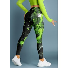Dames pilatesleggings Fitness broek Fitnessleggings Zakken Zegelrecht Zijzakken Pilates Sportschool Sportschooltraining Broeken Panty Legging Abstract Rood Groen Sport Sportkleding Hoge Elasticiteit