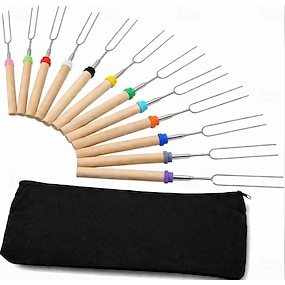 Set van 12 s'mores-stokjes voor de vuurplaats - accessoires voor het kampvuur, marshmallow-roosterstokjes, s'mores-set voor buiten - s'mores-spiesjes, hotdogvork voor buiten, kampeerbenodigdheden,
