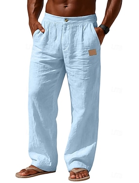 Voor heren Linnen broek Broek Zomerbroek Wijde broek Strandbroeken Trekkoord Elastische taille Recht been Effen Comfort Ademend Volledige lengte Dagelijks Feestdagen Uitgaan Modieus Klassieke Stijl