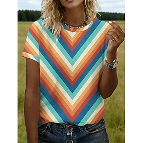 Dames T-shirt Afdrukken Grafisch Geometrisch Stijlvol Klassiek Casual Korte mouw Strakke ronde hals Normale tops Dagelijks Sport Uitgaan blauw Hemelsblauw Oranje Licht Blauw Zomer Lente