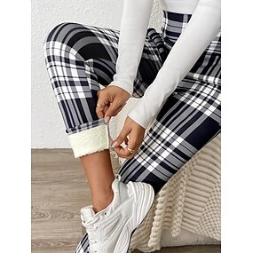 Dames fleece gevoerde leggings Fleece broek Chinese Leggings Modieus Streetwear Basic Volledige lengte Hoge taille Ruitjes Opdrukken Comfortabel Zacht Hoge Elasticiteit Buiten Straat Rood Grijs Lente