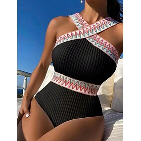 Dames 1-delig zwempak Slankmakende Sexy Uitsnijding Monokini Buikcontrole Hoge taille Slank Rugloos Vakantie Strandkleding Kleurblok Halterhals Mouwloos Badpakken