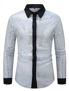Voor heren Overhemd Normaal shirt Overhemd met knopen Galashirt Discoshirt Wit Blozend Roze Rood Lange mouw Lovertje Revers Prestatie Feestavondkleding Pailletten Kleding Modieus modieus