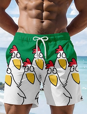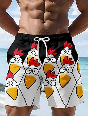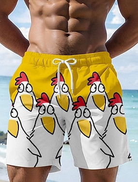Voor heren Tekenfilm Haan Grappig Lange zwembroeken Zwemshorts Boardshorts Medium Taille Hawaii Strandvakantie Zijzakken Mesh voering Elastische tailleband met trekkoord Ontwerper Kleding