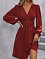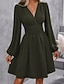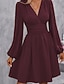 Dames Mini-jurk Casual jurk Jurk met ruches Modern Dagelijks Uitgaan Weekend Normale pasvorm Effen Lange mouw V-hals Zwart Wijn Leger Groen Marineblauw Lente Herfst