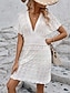 Dames Mini-jurk Jurken van katoen en linnen Shirtjurk Winter jurk Casual Vakantie Normale pasvorm Effen Korte mouw V-hals Zwart Wit Geel blauw Zomer