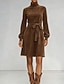 Dames Mini-jurk Jurk met capuchon Casual jurk Elegant Vintage Modieus Lantaarn mouw Dagelijks Uitgaan Weekend Normale pasvorm Effen Lange mouw Coltrui Bruin Lente Herfst Winter