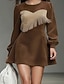 Dames Mini-jurk Casual jurk Boho-jurk Elegant Vintage Modieus Dagelijks Uitgaan Weekend Normale pasvorm Kleurenblok Lange mouw Strakke ronde hals Bruin Lente Herfst Winter