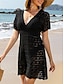 Dames Mini-jurk Zwarte jurk Jurk met lovertjes Casual jurk Cocktail jurk Modieus Stijlvol Romantisch Winter jurk Afspraakje Uitgaan Normale pasvorm Afdrukken Lange mouw Diepe V-hals Zwart Zomer Lente