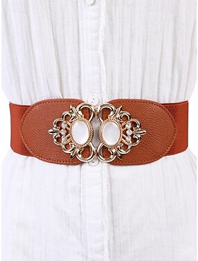 Retro elastische riem in paleisstijl voor dames met versierde metalen gesp, elegant design, geschikt voor formele en casual kleding