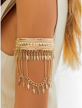 Gouden gelaagde armband voor dames met bladbedels - boho statement sieraden voor feesten en festivals