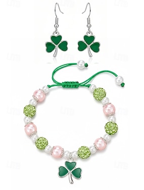 Damesbrocheset met klavertje vier voor St. Patrick's Day, gemaakt van legering, elegante en feestelijke Ierse stijl voor hoeden, jassen, tassen, parades, feesten en andere feestelijke gelegenheden.