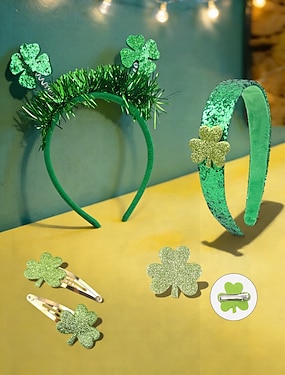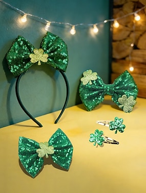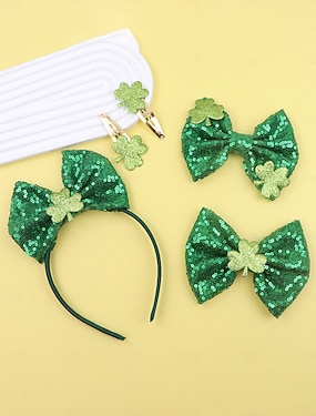 Dames haarbandenset voor St. Patrick's Day (5 stuks) - groene glitter klaver &Haarstrikken, feestelijke Ierse accessoires voor een feestkostuum, parade of feest. &viering