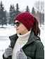 Damesmuts met paardenstaartopening – stijlvolle en comfortabele rode kabelgebreide muts voor koud weer, perfect voor casual gelegenheden en buitenactiviteiten.