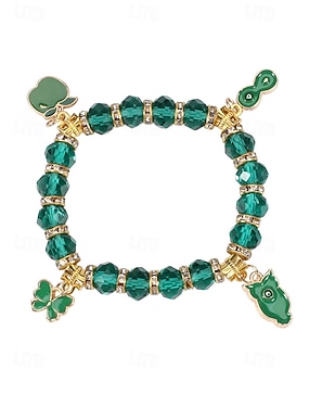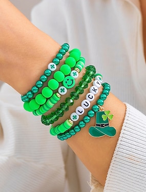 Damesarmbandenset voor St. Patrick's Day, stapelbare armbanden met meerdere strengen groene kralen, gelukbrengende klavertjesdrie, legering en imitatiekristal, feestelijke Ierse feestsieraden voor vrouwen