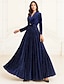 Pakkie Moeder van de Bruid Jurk Bruiloft Gast Elegante Simpele Sieraad Hals Vloerlengte Polyester Lange Mouwen met Effen Kleur