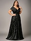 A-lijn Moeder van de bruid jurk Elegant Vintage Luxueus V-hals Tot de grond Spandex Polyester Korte mouw met Pailletten