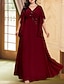 Rood Zwart A-Lijn Moeder van de Bruid Jurk Elegant Vintage Portretkraag Vloer Lengte Satijn Fluweel Lange Mouw met Rimpeling Effen Kleur