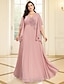Jumpsuits Moeder van de Bruid Strand Bruiloft Elegante Illusie Hals Vloerlengte Rekbare Chiffon 3/4 Lengte Mouw met Kant Effen Kleur