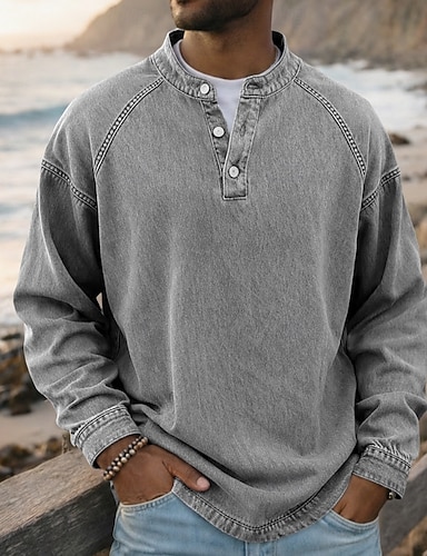 Voor heren T-shirt Henley-shirt Overhemd van 100% katoen met zure wassing Lange mouw Effen Kleur Effen Vintage Streetwear Casual Puur gewassen Raglan mouwen Opstaand Henley Casual Huis Straat Lente