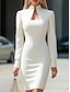 Dames Knielengte jurk Werk Jurk Bodycon Hemdjurk Elegant Modieus Modern Buiten Vakantie Feest Normale pasvorm Effen Lange mouw Hoge nek Zwart Wit Bordeaux Abrikoos Lente Herfst