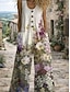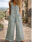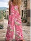 Dames Normaal Jumpsuit Actief Bloemig Mouwloos Breed Been V-hals Zak Afdrukken Dagelijks Vakantie Ruim Passend blauw Blozend Roze Leger Groen Zomer