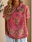 Dames Blouse Afdrukken Grafisch Abstract Vintage Stijlvol Casual Korte mouw Overhemdkraag Lange tops Dagelijks Werk Rood Oranje Zomer Lente