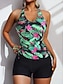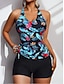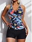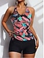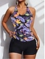 Dames Zwemkleding Tankini 2 stuks Korte broek Zwempak Buikcontrole Hoge taille Slank Blote rug Vakantie Strand Kleding Bloemig Tropisch U-hals Mouwloos Badpakken