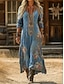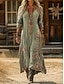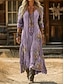 Dames Maxi-jurk Boho-jurk Vintage Jurk Casual jurk Vintage Dagelijks Buiten Vakantie Ruim Passend Bloemig Lange mouw V-hals blauw Paars Groen Grijs Lente Herfst