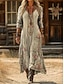 Dames Maxi-jurk Casual jurk Boho-jurk Modieus Modern Dagelijks Buiten Vakantie Normale pasvorm Geometrisch Lange mouw V-hals Oranje Khaki Lente Herfst