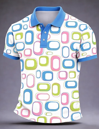 Voor heren Meetkundig Poloshirts Korte mouw Poloshirt Revers Casual Sportkleding 3D-afdrukken Knop Lente zomer blauw Paars Groen